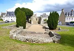 Archäologische Grabungen belegen eine Besiedlung des Areals der früheren Kathedrale von der Eisenzeit bis zum Mittelalter. Im 4. Jahrhundert entstand in gallorömischer Zeit ein großes Gebäudeensemble mit einem von einem Portikus umgebenen Innenhof. Zwischen dem 5. und 7. Jahrhundert wurde dort in merowingischer Zeit eine Kirche errichtet, die im 9. Jahrhundert durch eine vorromanische Kathedrale auf dem Grundriss eines Taukreuzes ersetzt wurde. Sie wurde zwischen 950 und 1150 durch einen größeren Neubau ersetzt, dessen Langhaus im Umfang den Fundamenten des langgestreckten Hauptgebäudes des gallorömischen Bauwerks entsprach. Diese romanische Kathedrale war ein repräsentatives Bauwerk mit zwei gegenüberliegenden Apsiden im Osten und im Westen des Gotteshauses. Eine Bauform, die einzigartig in der Bretagne war, die man zeitgleich in der Karolingerzeit zum Beispiel im alten Kölner Dom und im Dom von Besançon findet. Im 12. Jahrhundert wurde im Jahr 1145 der Sitz des Bistums weiter nördlich nach Saint-Malo innerhalb der dortigen Stadtmauern verlegt. Im 13. Jahrhundert wurde die alte Kathedrale um 1255 mit Ausnahme der Ostapsis gleichzeitig mit der Stadtmauer geschleift. Die östliche Apsis wurde später in eine dem heiligen Petrus gewidmete Kapelle umgewandelt, die Jahreszahl 1675 war ursprünglich an dem Bauwerk sichtbar. Im Jahr 1868 wurde die Kapelle restauriert und neu benediziert. Zwischen 1972 und 1978 erfolgten grundlegende archäologische Untersuchungen des gesamten Areals. Heute stellt der Standort eine Konsolidierung der Fundamente der romanischen Kathedrale dar.[2][3]