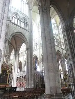 1236 wurde mit den östlichen Teilen begonnen. Zwischen 1240 und 1258 ruhte der Bau aus Geldmangel, erst der Chorumgang war schon gebaut. Er wurde von den Baumeistern Thomas de Cormont und seinem Sohn Renaut vollendet und wird mit seinen befensterten Triforien dem Gothique rayonnant zugerechnet.