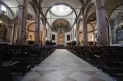 Das Innere der Basilika weist Renaissance-Linien auf, wobei die Höhe der Säulen den für gotische Kirchen typischen Auftrieb nach oben verleiht. Die dreischiffige Kirche ist in sieben Joche gegliedert. Der Innenraum hat eine Länge von 68 Metern bei einer Breite von 27 Metern. Der Chor ist mit einer dreifachen Reihe von Chorgestühl eingefasst. Die Kuppel über dem Altarraum ist luftig und voller Licht. Hinter dem letzten großen Bogen öffnet sich die halbrunde Apsis, deren Gewölbe von Antonio Ermolao Paoletti mit einer triumphalen Himmelfahrt Mariens ausgemalt wurde. Unter den Werken bedeutender Künstler, die in der Kirche aufbewahrt werden, sind zwei Gemälde von Gaspare Diziani hervorzuheben, die die Heiligen Franz von Sales, Kajetan von Thiene und Andrea Avellino darstellen, und das andere die Bekehrung des Heiligen Paulus. Egidio Dall’Oglios schuf das Bild der Heiligen Familie für den Altar im linken Seitenschiff.