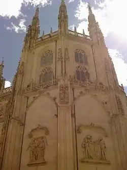 - ↑ Miguel Calvo: La caída de una estatua de la catedral de Burgos, evidencia su deterioro. In: El País. 14. August 1994, abgerufen am 14. Oktober 2024 (sp).