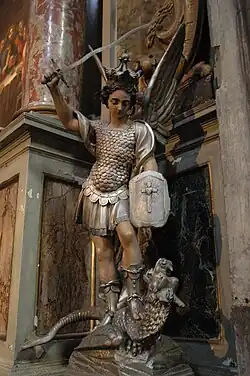 Zahlreiche barocke Statuen, Reliefs und Gemälde schmücken das Kirchenschiff und die Seitenkapellen. Unter ihnen ragt die Figur eines drachenbezwingenden Erzengels Michael hervor.