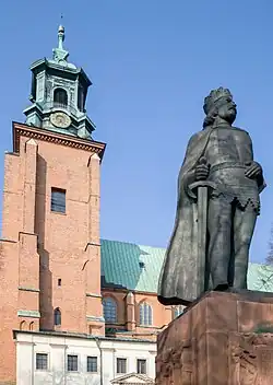 Zwischen dem 7. und 15. März 1000 traf der Römisch-deutsche Kaiser Otto III. in Gniezno ein, um am Grab des Hl. Wojciech zu beten. Es fand damals der erste Akt von Gnesen statt,[1] bei dem Polens Fürst Bolesław I. Chrobry mit Kaiser Otto III. den Plan zur Errichtung eines gemeinsamen Königreichs von Deutschen, Franzosen, Engländern, Römern und den slawischen Gebieten diskutierte. Es wurde das Erzbistum Gniezno geschaffen und das Gotteshaus in den Rang einer Kathedrale erhoben. Erster Erzbischof von Gniezno wurde Gaudentius. Im Jahre 1018 brannte die Kathedrale völlig aus, war aber nach sieben Jahren wiederaufgebaut.[2]
