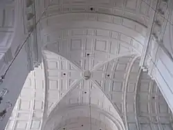 Die Kirche besteht aus drei Kirchenschiffen in Form einer Hallenkirche mit Tonnengewölben, mit einem Hochchor und Seitenkapellen sowie einem Querschiff sowie einer ausgeprägten Apsis am Ende des Hauptschiffes. Die Vierung ist durch Bögen gekennzeichnet.[2]