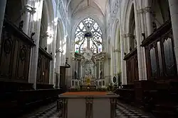 Das ca. 34,50 Meter lange und 22 Meter hohe fünfjochige Mittelschiff hat einen klassisch-gotischen Aufriss (Arkadenzone, Triforium, Obergaden) und wird von einem Rippengewölbe überspannt. An die niedrigeren Seitenschiffe wurden Kapellen angebaut. Der Chorbereich ist weitere 25 Meter lang und endet in einem flachen Chorschluss mit einem reichgestalteten spätgotischen Maßwerkfenster.