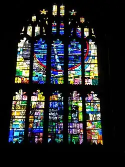 - Die 1940 zerstörten Glasfenster im Westen wurden von Anthony Hollaway neu gestaltet: 1973 schuf er das Georgfenster rechts neben dem Westeingang, 1976 das Denysfenster links neben dem Westeingang, 1980 das Marienfenster an der Westseite des Turmes, 1991 das Schöpfungsfenster und 1995 das Offenbarungsfenster, beide ebenfalls im Westen der Kirche.