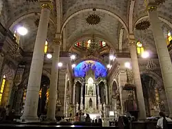 Im Inneren des Gebäudes zeigt der Eklektizismus Elemente im neugotischen und neobarocken Stil und auch mit klassizistischem Einfluss. Auf dem neogotischen Hauptaltar stehen Statuen aus Carrara-Marmor zusammen mit den Bildern der hl. Anna und des hl. Joachim. Auf der Vorderseite des Altars aus weißem Marmor wird das letzte Abendmahl skulptural dargestellt. Zwei der vier klassizistischen Seitenaltäre stehen an den Seiten des Hauptaltars, die beiden anderen an den Seiten des Haupteingangs.