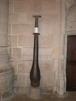 Als Andenken an die Glocke "Non-Pareille" ist nur der Klöppel erhalten[35], da diese durch die Truppen von Mathieu Merle eingeschmolzen wurde. Sie wog angeblich 25 t und war zur Zeit ihrer Entstehung "die größte Glocke der Christenheit". Nach der Fertigstellung der Glockentürme ließ der damalige Bischof François de La Rovère bereits mehrere Glocken aus Clermont-Ferrand oder aus Lyon kommen. Zu seinen Aufträgen gehörte die Glocke "François" von beeindruckenden Ausmaßen, bekannt als "Non-Pareille". Dazu wurden vom Lyoner Bischof Franz II. de Rohan im Oktober 1516 600 Zentner Metall geschickt, für dessen Transport vom Ufer der Rhone zu dem des Lot 180 Maultiere benötigt wurden. Währenddessen wurde der Klöppel aus La Levade im Département Gard angeliefert. Die Überlieferung berichtet, dass der weiße Esel, der ihn trug, in der Vorstadt Saint-Jean vor Erschöpfung gestorben sein soll.[36] Nachdem das Metall in Mende angekommen war, wurde die Glocke vor Ort in der Kathedrale gegossen, und zwar in der heutigen Turmkapelle, die dem Hl. Dominikus gewidmet ist. Die besondere Form des Gewölbes, unterbrochen von einem Kreis mit einem Durchmesser von etwa 4 Metern, zeigt noch heute den Durchbruch für ihre Aufhängung im Turm an.[36]