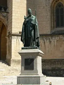 Im Juni 1874 wurde die Kathedrale von Mende durch eine päpstliche Urkunde (Breve) in den Rang einer Basilica minor erhoben.[23] Ebenfalls 1874 wurde auf dem Vorplatz der Kathedrale, der seither den Namen Place Urbain V trägt, die Statue dieses Papstes aufgestellt, der so sehr mit der Kathedrale verbunden war.[24] Seither wurde sie aus der Mittelachse des Hauptportals seitlich vor den kleineren Glockenturm versetzt. Der Sockel trägt die Inschrift "Au bienheureux Urbain V / Pape de 1362 à 1370 / Bienfaiteur du Gévaudan / 28 juin 1874” ("Dem seligen Urban V. / Papst von 1362 bis 1370 / Wohltäter des Gévaudan / 28. Juni 1874").