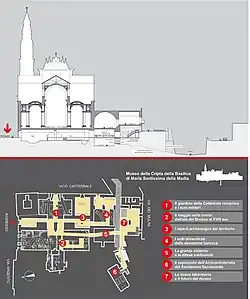 Das Gelände, auf dem die Kathedrale in Monopoli steht, hat sich dank der 1986 begonnenen archäologischen Ausgrabungen als ein Gebiet mit antiken und komplexen zeitlichen Schichtungen erwiesen, die um 4500 v. Chr. beginnen und bis in die Gegenwart reichen. Es wurden Pfahllöcher der Bronzezeit und Überreste eines heidnischen Tempels gefunden. Weiterhin wurden hellenistische und frühmittelalterliche, christliche Bestattungen belegt.[3]