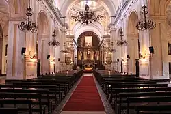 Das Erdgeschoss der Fassade mit seiner dreiportaligen Eingangszone ist nach einem Triumphbogenschema gestaltet; darüber befinden sich drei kleine Fenster und ein gesprengter Rundgiebel. Die seitlichen Glockentürme (campanarios) dienen auch der Stabilisierung der Fassade. Das etwa 16 m hohe Mittelschiff des dreischiffigen Langhauses ist gewölbt; über der Vierung erhebt sich eine auf einem durchfensterten Tambour ruhende Kuppel.