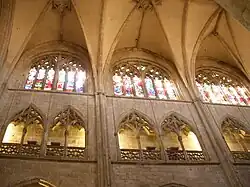 Der Grundriss der Kirche beruht auf einem lateinischen Kreuz. Sie hat drei Schiffe. Das Mittelschiff ist 10 m breit, 67 m lang und 20 m hoch und somit deutlich höher als die 6 m breiten Seitenschiffe. Das Gewölbe ruht auf Bündelpfeilern. Ursprünglich schloss die Kirche mit einer zentralen, halbkreisförmigen Apsis, die von zwei weiteren, kleineren vor den Seitenschiffen flankiert wurde. Die heutige gotische Apsis des Doms hat einen polygonalen Grundriss. Von den zwei Reihen mit Buntglasfenstern ist nur die obere heute sichtbar, da das übergroße Tableau des Hauptaltars die Sicht auf die untere Reihe verstellt. Im Barock wurde der Chorbereich umgestaltet, um einen Umgang zu gewinnen von dem radial Kapellen abgehen.[14] Zahlreiche Kapellen sind auch den Seitenschiffen angegliedert.