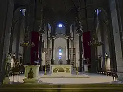 Unter den Ausstattungsgegenständen ist der aus Carrara-Marmor gefertigte Altar mit einer Darstellung des Lamm Gottes, flankiert von den heiligen Stephanus und Karl Borromäus, besonders hervorzuheben. Ungewöhnlich ist die im äußeren Seitenschiff aufgestellte Nachbildung einer von zwei Cherubim überhöhten Bundeslade.