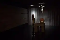 - Gekreuzigter Christus mit einer polychromen Holzskulptur, die der Überlieferung nach von König Philipp II. von Spanien gestiftet wurde.