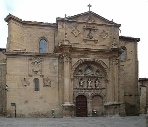 Zwischen 1761 und 1765 erhielt die Kirche eine neu gestaltete, barocke Südfassade, die sich auf einen kleinen Platz (Plaza del Santo) öffnet: Der Haupteingang wurde hierhin und auf die Höhe des Querschiffs verlegt. Das neue Portal hat zwei Türen, einen großen Rundbogen, den Nischen mit Statuen der Schutzheiligen der Diözese (Heiliger Domingo, Heiliger Celedonio und Heiliger Emeterio) und Okuli schmücken.