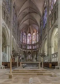 Der reiche Figurenschmuck der Portalfassade wurde während der Französischen Revolution zerstört. Dagegen blieben die bedeutenden gotischen Bildfenster größtenteils erhalten. Während der beiden Weltkriege waren sie ausgelagert.