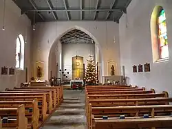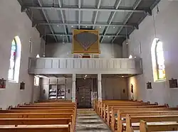 Im Jahre 1939 folgten die Altäre. Eine Heizung war 1951 beschafft worden; der Norge-Warmluft-Ölfeuerungsofen kostete damals 920 Franken. Am 8. Mai 1965 wurden die auf das Geläut der Martinskirche im Dorf abgestimmten Glocken aufgezogen, danach folgten 1971 die heutigen Bleiglasfenster und im Jahr 1979 die erste Orgel.[3]