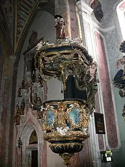 - Das gotische Apostelfresko wurde stark übermalt. Das Fresko darüber zeigt die Himmelfahrt der Maria, es wurde 1636 geschaffen und gilt als schwache Arbeit. Auf der gegenüberliegenden Wand ist das Fresko Michael im Kampf mit den Teufeln zu sehen.[14]