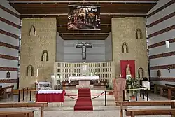 Das Altarkreuz und den Tabernakel schuf der Metallplastiker Hanns Angerbauer. Die Heiligenstatuen in Nischen der Altarwand schuf der Bildhauer Gottfried Prabitz. Die Marienstatue schuf Leo Bäumler (1965). Den Kreuzweg schuf Franz Weiss. Das Triptychon Papst Johannes Paul II. schuf Roelof Rene Stakvis.