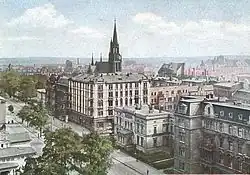 1873 erhielt Kattowitz das Landratsamt des neu gebildeten Kreises Kattowitz, bildete ab 1899 einen eigenen Stadtkreis und wurde zum Sitz von Industrie-Großkonzernen (z. B. seit 1889 Kattowitzer Aktien-Gesellschaft) und Großbanken. Die in der Stadt ansässige Schwerindustrie entwickelte sich günstig. Einen beträchtlichen Aufschwung brachte auch die Gründung der Eisenbahndirektion Kattowitz zum 1. April 1895 (1922 Verlegung und Umbenennung zur Reichsbahndirektion Oppeln).[8]
