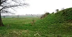 Die Burg hatte einen Durchmesser von ca. 100 Metern und wurde auf einer in eine feuchte Niederung hineinragenden erhöhten Fläche angelegt. Das Bauwerk war von einem umlaufenden Wall geschützt – im Norden und Nordwesten trennt ein Graben die Burg von der Hochfläche, im Süden schirmt ein niedrigerer Wall die Burg von der Niederung ab.