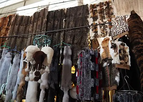 - 1814 kamen hauptsächlich Felle aus Russland und Sibirien, graue, schwarze, gelbe und bunte. Ein Sack mit dem Inhalt von 1000 Stück kostete in Petersburg 35 bis 40 Rubel, die schwarzen kosteten das Doppelte. Aus Taurien (Halbinsel Krim) kamen weiße, schwarze, graue, rötliche und bunte oder scheckige, die weißen wurden stückweise verkauft zu 20 bis 25 Para, die übrigen zu 10 bis 12 Para.[31]