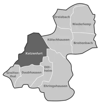 Im Zuge der Gebietsreform in Hessen wurden zum 1. Januar 1977 die Gemeinden Ehringshausen, Breitenbach, Daubhausen, Katzenfurt, Kölschhausen und Niederlemp kraft Landesgesetz zur neuen Großgemeinde Ehringshausen zusammengeschlossen.[3][4] Für Katzenfurt wurde wie für alle nach Ehringshausen eingegliederten Gemeinden ein Ortsbezirk eingerichtet.[5] Sitz der Gemeindeverwaltung blieb Ehringshausen.