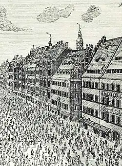 Der Renaissance-Vorgängerbau war 1506 durch den Saigerhüttenbesitzer Moritz (I.) Bucher (bzw. Buchner) errichtet worden (Buchers Hof).[3]