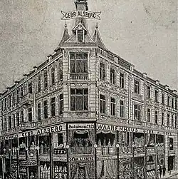 - das Kaufhaus Gebr. Alsberg Nachfolger in (Wuppertal-)Elberfeld, Wall 36, spätestens im Jahr 1903 bereits mit Verkaufsflächen in vier Geschossen, später Kaufhaus Koch, Gebäude 2014 abgebrochen[34][35]