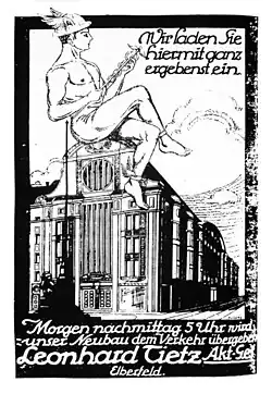 Das Warenhaus Tietz wurde vom Architekten Wilhelm Kreis, einem damals führenden Architekten, entworfen. Kreis war bereits unter anderem durch den Bismarckturm in Wuppertal als Architekt hervorgetreten. Bauherr des Gebäudes war die Leonhard Tietz AG, die es als Mehrabteilungskaufhaus nach französischem Vorbild konzipierte. Das Warenhaus wurde von 1910 bis 1912 gebaut und am 24. April 1912 eröffnet. Bereits 1917 und erneut 1929 wurde der Bau erweitert. Die immense Vielfalt der Waren unter einem Dach bot der damaligen Bevölkerung ein völlig neues Einkaufserlebnis. Zuvor bestand bereits ab 1885 an der Herzogstraße eine erste Filiale, die als erstes Warenhaus Deutschlands galt.
