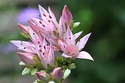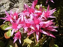 • 'Album Superbum' auch Schneeteppich-Fettblatt oder Teppich-Fetthenne genannt, mit reinweißen Blüten und hellgrünen Blättern, nicht zu verwechseln mit Sedum album (Weißer Mauerpfeffer[8]),