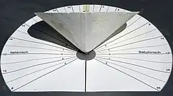- ↑ Javier Moreno Bores: A New Family Of Sundials With Conical Gnomon The Compendium of the North American Sundial Society, Volume 5, Number 2, Juni 1998