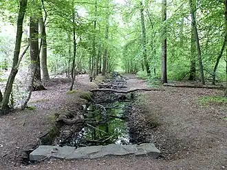 Ein anderer Bach verläuft laut Karte östlich des Ahrenrieder Teichs weiter Richtung Ostnordost und entspringt an der Landesstraße 293 (Bevenroder Straße