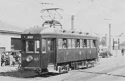 Ältester Teil der Keiō-Linie ist der Abschnitt zwischen Sasazuka und Chōfu, eröffnet am 15. April 1913 durch die Vorgängergesellschaft Keiō Denki Kidō (京王電気軌道), wobei denki kido übersetzt „elektrische Straßenbahn“ bedeutet.[4] Dieser Name ist kein Zufall, denn die Strecke war nicht nach dem Eisenbahngesetz konzessioniert worden, sondern nach dem Straßenbahngesetz (ersteres sah damals noch gar keine elektrischen Vorortbahnen vor). Somit kam nicht die bei Eisenbahnen übliche Kapspur (1067 mm) zur Anwendung, sondern die „schottische Spurweite“ von 1372 mm wie bei der Tokioter Straßenbahn.[5]
