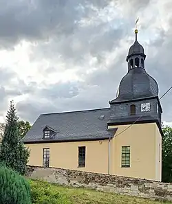 Die Kirche Keila (auch St. Johannis) ist eine im Jahr 1696 weitgehend umgebaute, spätmittelalterliche Chorturmkirche. Sie ist innen durch eine Flachdecke mit umlaufender Kehle geschlossen; eine eingeschossige Empore umgibt das Innere. Das Hauptstück der Ausstattung ist ein Kanzelaltar des 18. Jahrhunderts. Ein pokalartiger Taufstein stammt vermutlich aus dem 16. Jahrhundert. Ein Gemälde mit der Kreuzigungsszene wurde 1604 von Paul Keil aus Schleiz geschaffen.[4] Die Orgel ist ein Werk von Johann Christian Rebhuhn aus der Zeit um 1823 mit zehn Registern auf einem Manual und Pedal.[5] Im Jahr 2021 wurden umfangreiche Restaurierungsarbeiten an der Kirche beendet; dazu gehörte unter anderem eine statische Sanierung des aus dem Lot gewichenen Kirchturms und eine Innenraumrestaurierung.[6] Zwei Glocken dienen als Geläut; die ältere aus dem Jahr 1505, die zweite wurde 1921 als Ersatz für die kriegsbedingt abgegebene mittelalterliche Vorgängerglocke gegossen.