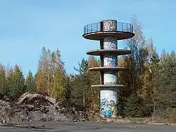 Der Turm der Rennleitung als zum Kunstwerk umgewidmetes Erinnerungsdenkmal an die Strecke – Zustand 2022
