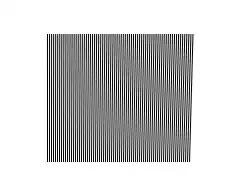 Im Bereich von 0,5 bis 1, dem Bereich, in dem der konkrete Kellfaktor gewählt werden kann, treten infolge der Phasenlage des Bildsignals in Relation zur Phasenlage der Abtastfrequenz Überlagerungseffekte auf, die sich als eine Schwebung bemerkbar machen. Je nach Bildinhalt und Art der Darstellungsgeräte sind diese Störungen unterschiedlich. Als Beispiel dient nebenstehendes Bild, das aus abwechselnd weißen und schwarzen vertikalen Linien besteht, somit dessen obere Grenzfrequenz genau der Abtastfrequenz entspricht, was gleich einem Kellfaktor von 0,5 ist. Die vertikalen Linien im Bild sind gegen den rechten Bildrand hin leicht geneigt, wodurch es zu unterschiedlichen Phasenlagen in Bezug zu den exakt vertikalen Abtastpunkten kommt. Durch diese Neigung kommt es zu einer Schwebung, die sich als Mischung, in diesem Fall sind dies graue Bereiche, unterschiedlicher Form ausbilden. Da diese grauen Bereiche nicht Teil des ursprünglichen Bildinhaltes sind, wirken sie als Störung. Bei einem Kellfaktor von 0,66, in zweiter Abbildung dargestellt, sind diese Störungen zwar noch vorhanden, aber deutlich schwächer. Dies entspricht der Abwägung zwischen einer Reduktion der Anzahl der Pixel einerseits und andererseits möglichst geringen Störungen.
