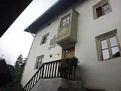 Das Haus ist ein dreigeschossiger Bau mit einem einhüftigen Satteldach und einem außergewöhnlich hohen Erdgeschoss. Die gegen den Hang gemauerten Kellerräume dienten als Vorrats- und Lagerräume. Gassenseitig befindet sich eine gemauerte Freitreppe mit einem zierlich gearbeiteten hölzernen Balustergeländer. Die Treppe führt über den Stichflur zu den Wohnräumen. Die Eingangstür ist rechteckig ausgeführt. Im dritten Obergeschoss kragt über dem Eingang ein künstlerisch gestalteter Rechteckerker aus. Dessen Brüstungsfeld wird von einem vertieften Vierpassfeld mit dem allsehenden Auge Gottes verziert. An der Südseite des Erkers befinden sich Freskenmalereien, die auf der Nordseite nicht vorhanden waren, oder aber inzwischen verschwunden sind. Links vom Erker ist auf der Hauswand ein Wappen mit der Inschrift „Saller 1675“ angebracht. Als letztes Geschoss befindet sich unter der Dachtraufe eine Mezzaningeschoss mit kleinen Rechteckfenstern. Die Hausecken zeigen eine Quaderbemalung.