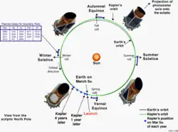 Um die Beobachtungen möglichst ungestört durchführen zu können, wurde das Teleskop nicht in eine Umlaufbahn um die Erde gebracht. Kepler befindet sich stattdessen in einem Sonnenorbit, dessen Umlaufzeit (372,5 Tage) und Exzentrizität etwas von dem der Erde abweichen. Die Sonde läuft dabei der Erde hinterher und entfernt sich im Laufe der Jahre immer weiter von ihr. So war es möglich, die Beobachtungsregion ohne periodische Verdeckung durch die Erde und mit minimalen Störeinflüssen zu überwachen.