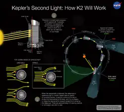 Nach dem Ausfall von zwei der vier Reaktionsräder wurde ein neuer Plan entwickelt, wie das Teleskop weiterhin betrieben werden konnte. Dazu musste es in eine Position gebracht werden, in der der Strahlungsdruck der Sonne das Teleskop nicht dreht. Dies erlaubte nur noch Beobachtungen entlang der Ekliptik, und das Teleskop wurde alle 75 Tage auf eine neue Himmelsregion ausgerichtet. Damit wurde weiterhin nach Exoplaneten gesucht,[29] außerdem zählte die Untersuchung von Sternhaufen, jungen und alten Sternen sowie aktiven Galaxien und Supernovae zu den neuen Aufgaben des Teleskops.[4]
