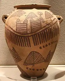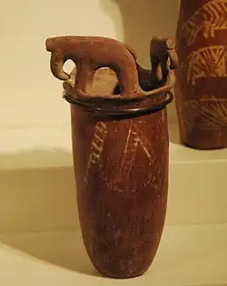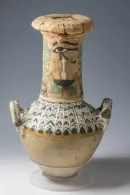 Unter Keramik im Alten Ägypten fasst man alle Gegenstände aus gebranntem Ton aus dem Alten Ägypten zusammen (nach Dorothea Arnold mit Ausnahme figürlicher Gegenstände).[1] Hauptsächlich dienten die Keramikgefäße als Haushaltsware und standen im Zusammenhang mit Lagerung, Zubereitung, Transport und Verzehr von Lebensmitteln und Rohstoffen. Dazu zählen Bier- und Weinkrüge, Wasserbehälter, aber auch die vielfach im Haushalt benutzten Brotbackformen, Feuerbecken, Lampen und Ständer, auf die man rundbodige Gefäße abstellen konnte. Andere Typen dienten rituellen Zwecken. Vielfach wurde Keramik als Grabbeigaben gefunden.