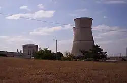 Das Kernkraftwerk, rechts ein Teil eines Kühlturms