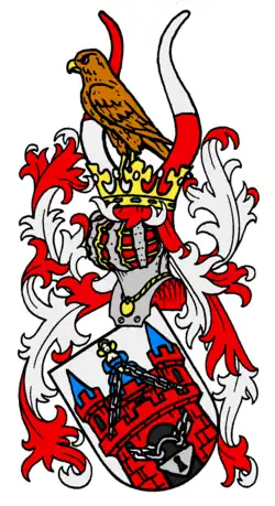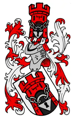 Das ältere Stammwappen zeigt in Silber einen gezinnten roten Turm, um den außen eine eiserne Kette geschlungen ist, die vor dessen offenem schwarzen Tor durch ein Vorhängeschloss zusammengehalten wird. Auf dem Helm mit rot-silbernen Decken der Turm wie im Schild.