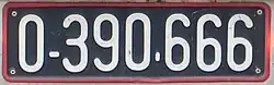 Gemäß dem Internationalen Abkommen über den Verkehr mit Kraftfahrzeugen vom Oktober 1910 mussten Kraftfahrzeuge bei der Einreise in ein anderes Land „augenfällig an der Rückseite“ – neben einem Nationalitätszeichen – ein „heimatliche[s] Kennzeichen mit einer Nummer“ tragen.[33]
