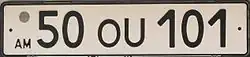 Armenische Kfz-Kennzeichen besitzen schwarze Schrift auf weißem Grund und gleichen somit dem europäischen Standard. Die Schilder zeigen seit August 2014 am linken Rand die Buchstaben AM unter der Flagge Armeniens.[1] Ältere Schilder zeigen statt der Flagge eine Hologramm-Plakette.