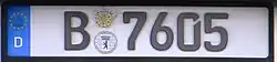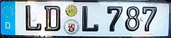 Nach dem Unterscheidungszeichen befindet sich auf der hinteren Kennzeichentafel oberhalb der Stempelplakette eine runde Plakette, die die Frist zur Anmeldung für die nächste Hauptuntersuchung zeigt (umgangssprachlich: TÜV-Plakette).