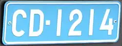 Diplomatenkennzeichen zeigen kein Eurofeld. Sie besitzen weiße Schrift auf hellblauem Grund. Die Schilder zeigen die Buchstaben CD oder C und eine maximal fünfstellige Zahl, deren erste beiden Ziffern das Herkunftsland näher spezifizieren.[1]
