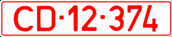 Diplomatenkennzeichen zeigen rote Schrift auf weißem Grund. Sie beginnen mit den Buchstaben CMD oder CD. Es folgen eine zweistellige Zahl, die das Herkunftsland angibt, und eine fortlaufende Nummer.