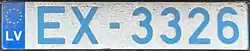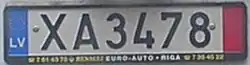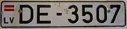 Lettische Kfz-Kennzeichen besitzen schwarze Schrift auf weißem Grund. Seit Lettlands Beitritt zur Europäischen Union am 1. Mai 2004 sind links die zwölf europäischen Sterne sowie die Buchstaben LV (Latvija) sichtbar. Vor 2004 war die lettische Nationalflagge über der Länderkennung abgebildet. Es folgen zwei Buchstaben, ein Bindestrich und eine bis zu vierstellige Ziffernkombination (z. B. AB-1234). Die Kennzeichen wurden 1994 eingeführt und lassen keine Rückschlüsse über die Herkunft des Fahrzeuges zu.