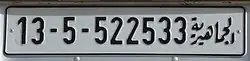 Kennzeichen ausländischer Firmen oder Bewohner zeigen am linken Rand ein blaues Feld, in welchem eine Zahl Auskunft über das jeweilige Herkunftsland gibt. Taxis tragen gelbe Kennzeichen, die zu Beginn noch einen weiteren arabischen Buchstaben zeigen. Bei zweizeiligen Schildern befindet sich die Seriennummer in der unteren Zeile. Diplomatenkennzeichen zeigen schwarze Schrift auf rotem Grund.