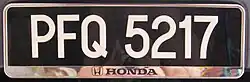 Malaysische Kfz-Kennzeichen werden vom Malaysian Road Transport Department vergeben und zeigen in der Regel weiße Aufschrift auf schwarzem Hintergrund.[1] Die Bundesstaaten auf der Malaiischen Halbinsel verwenden ein etwas anderes System als die beiden auf Borneo befindlichen Staaten Sabah und Sarawak. Bei allen Schildern gibt der erste Buchstabe den entsprechenden Bundesstaat bzw. das Bundesterritorium an.